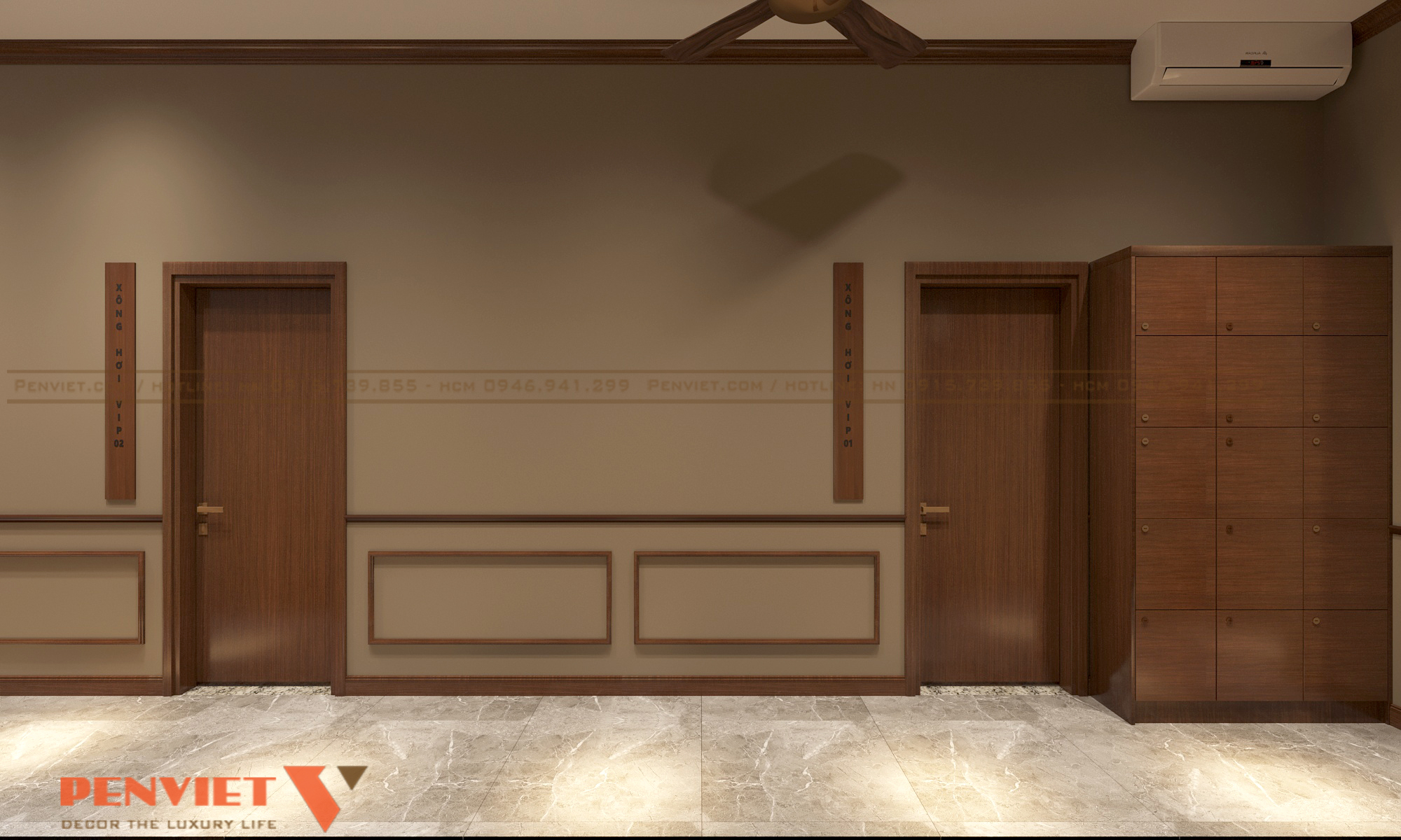 Xông hơi là dịch vụ yêu cầu tiêu chuẩn kỹ thuật cao. Khu vực xông hơi trong dự án sử dụng vật liệu chịu nhiệt và chống ẩm. Hệ thống thông gió được bố trí kín đáo nhưng hiệu quả.